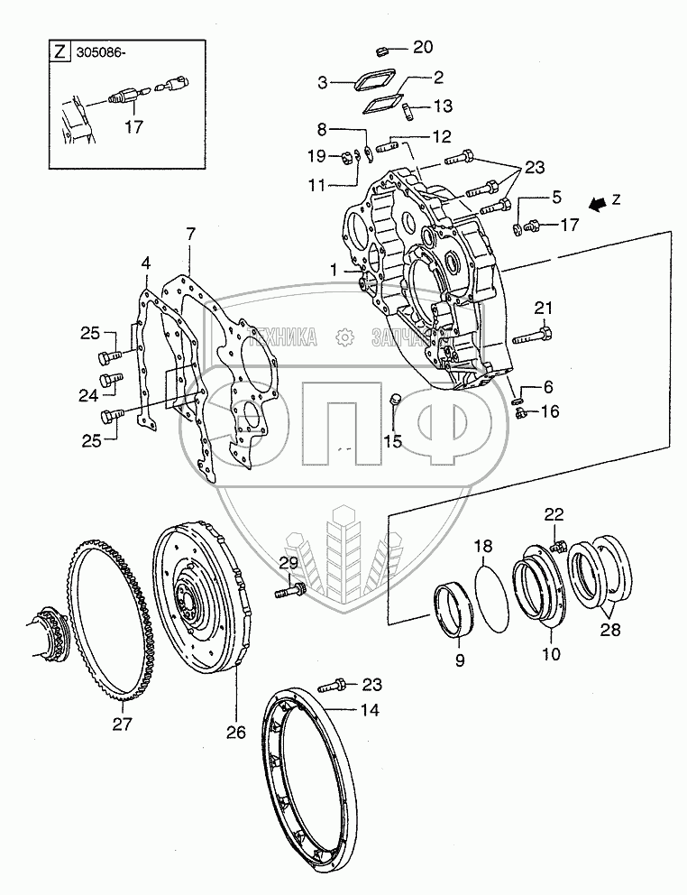 Каталог запасных частей к технике: Hitachi LX190-7/LX230-7. FLYWHEEL & HOUSING