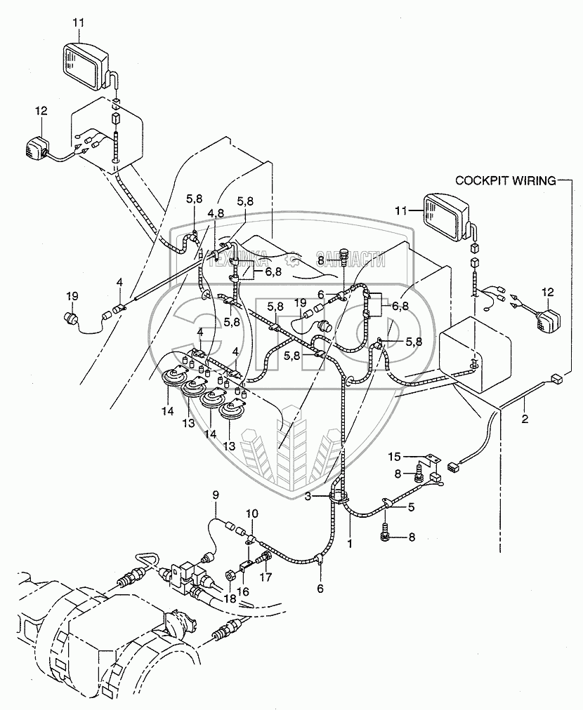 Каталог запасных частей к технике: Hitachi LX190-7/LX230-7. FRONT FRAME WIRING