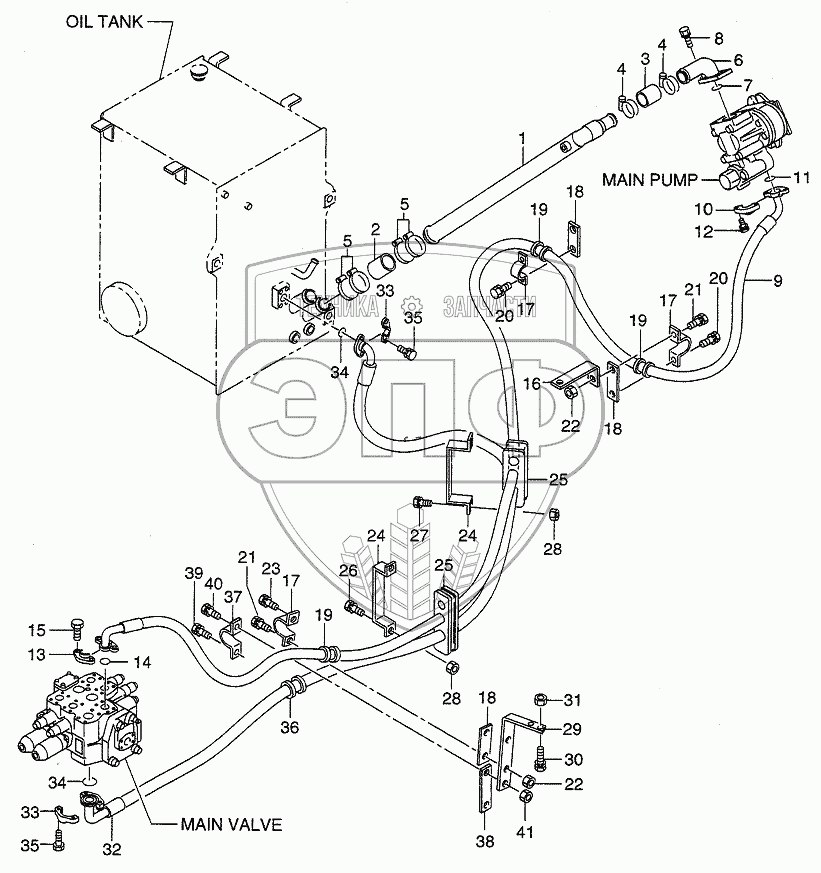 Каталог запасных частей к технике: Hitachi LX190-7/LX230-7. HYDRAULIC SYSTEM (SUCTION)