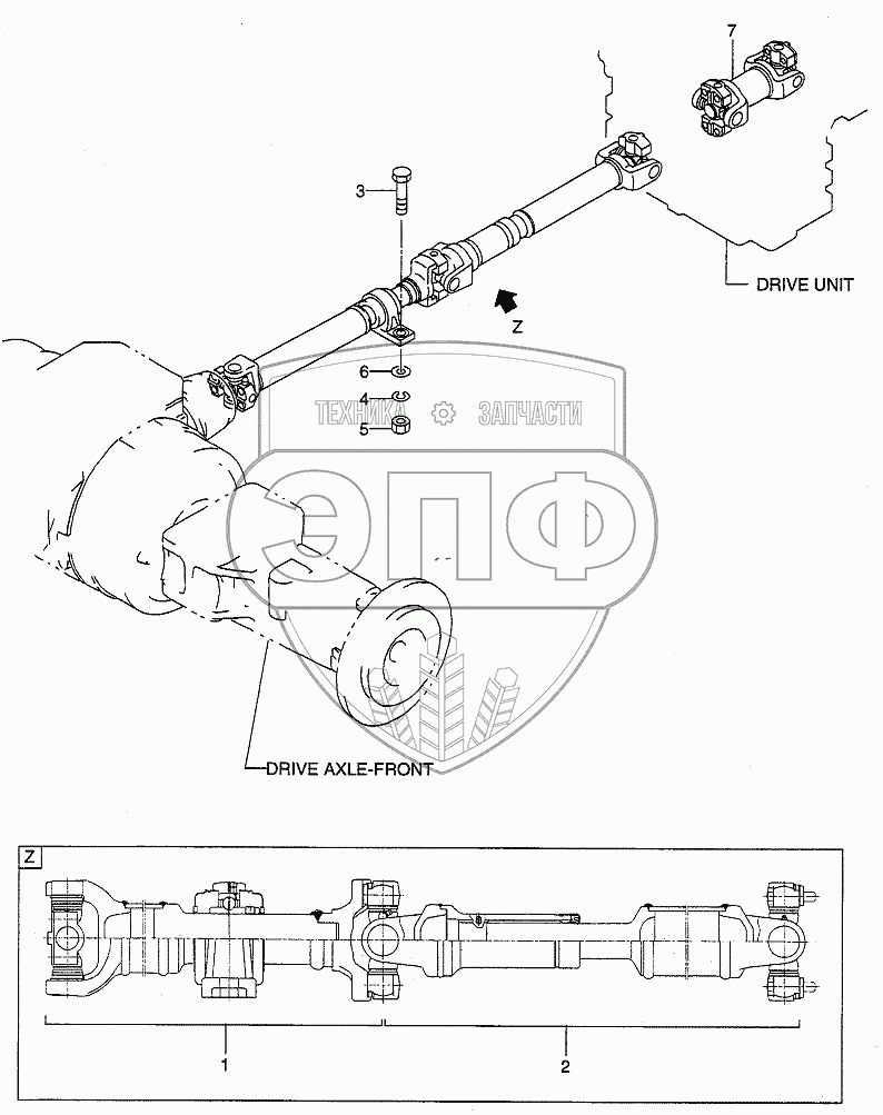 Каталог запасных частей к технике: Hitachi LX190-7/LX230-7. PROPELLER SHAFT