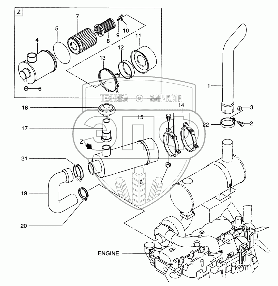 Каталог запасных частей к технике: Hitachi LX-110-7. Air intake & exhaust parts