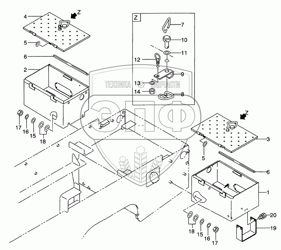 Каталог запасных частей к технике: Hitachi LX-110-7. Battery box