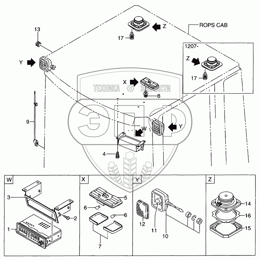 Каталог запасных частей к технике: Hitachi LX-110-7. Rops cab(lamp&radio)