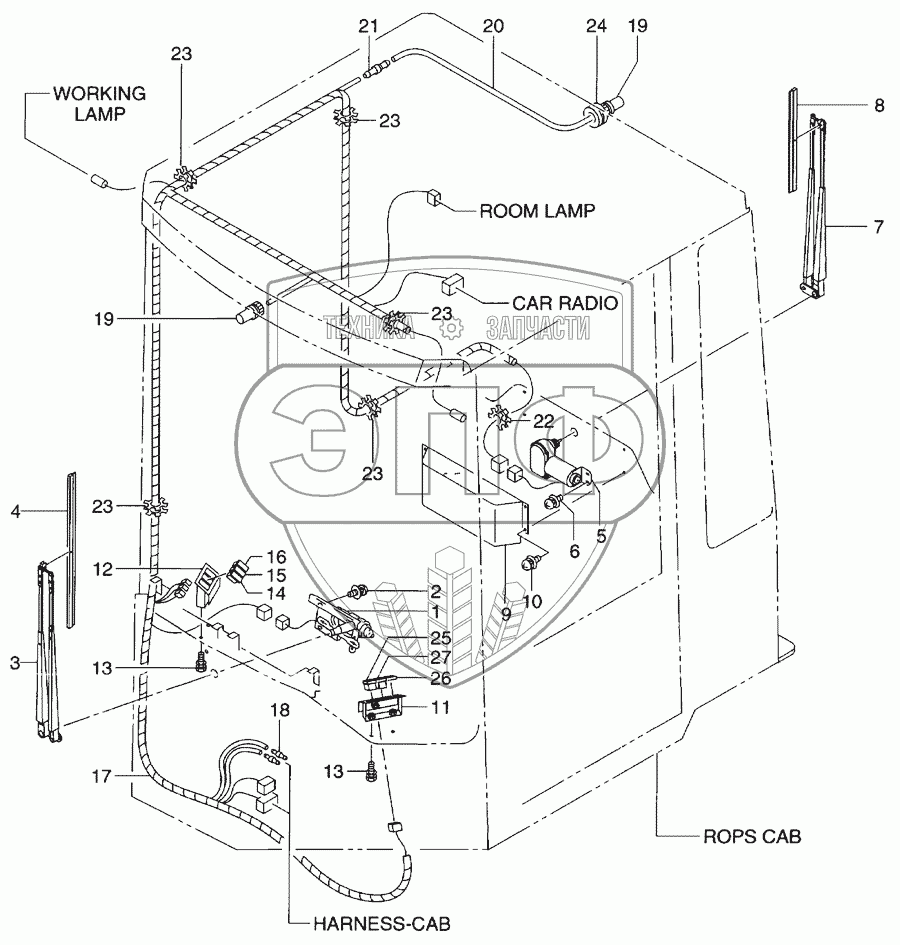 Каталог запасных частей к технике: Hitachi LX-110-7. Rops cab(wiper)