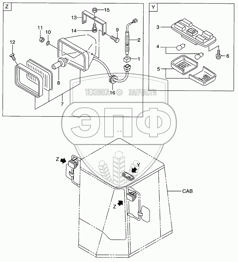 Каталог запасных частей к технике: Hitachi LX-130-7. CAB (LAMP)