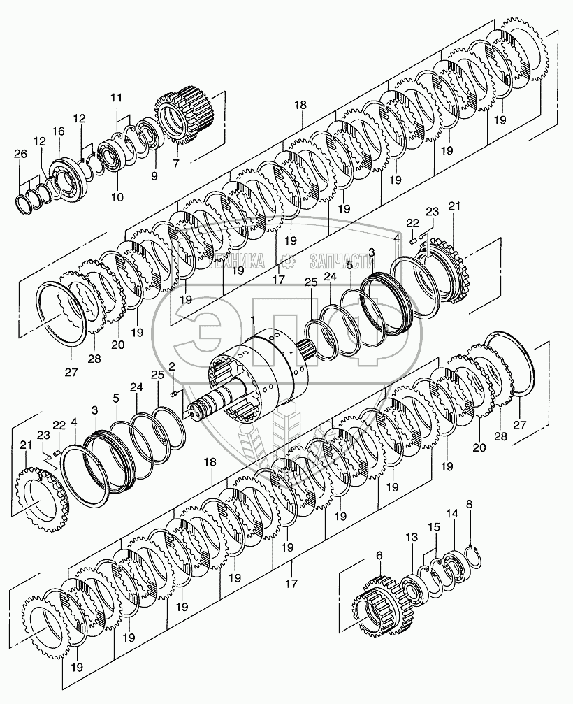 Каталог запасных частей к технике: Hitachi LX-130-7. CLUTCH (FORWARD & REVERSE)