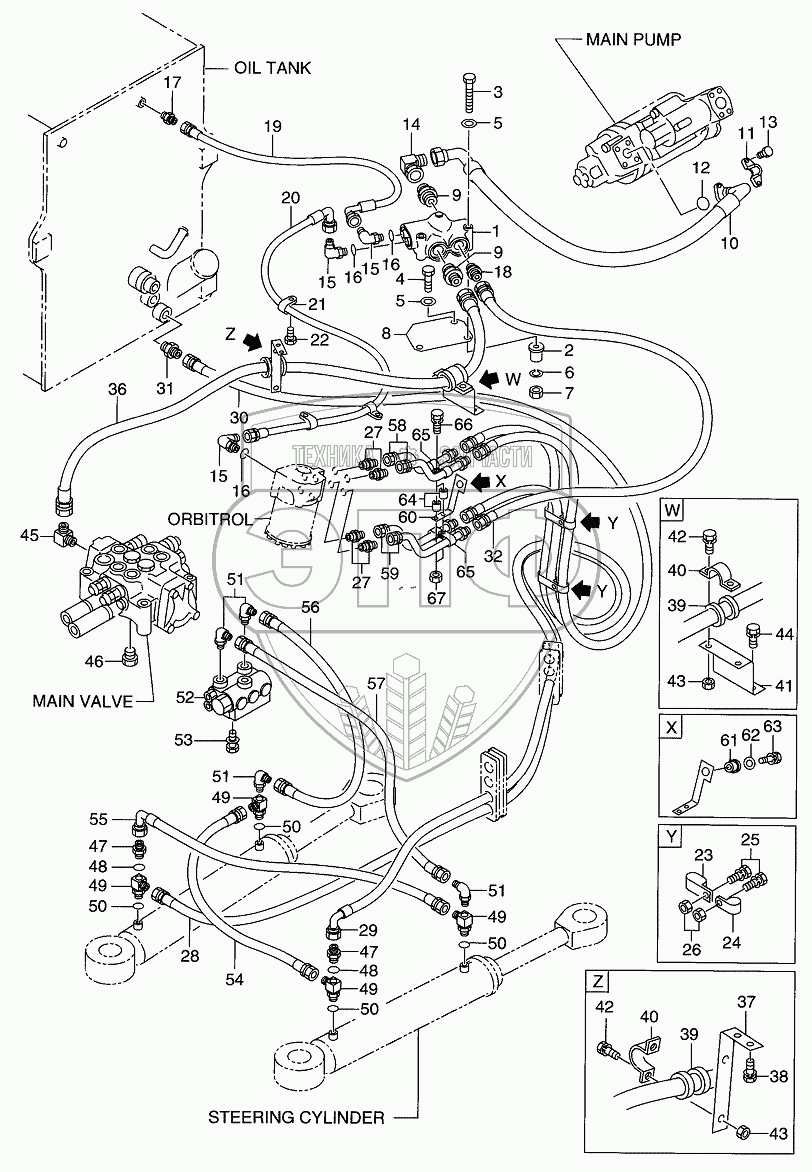 Каталог запасных частей к технике: Hitachi LX-130-7. HYDRAULIC SYSTEM (STEERING) (1106)
