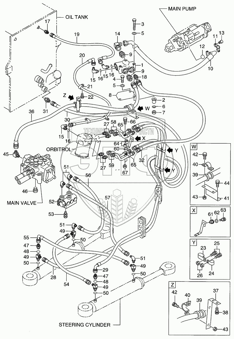 Каталог запасных частей к технике: Hitachi LX-130-7. HYDRAULIC SYSTEM (STEERING) (1109)