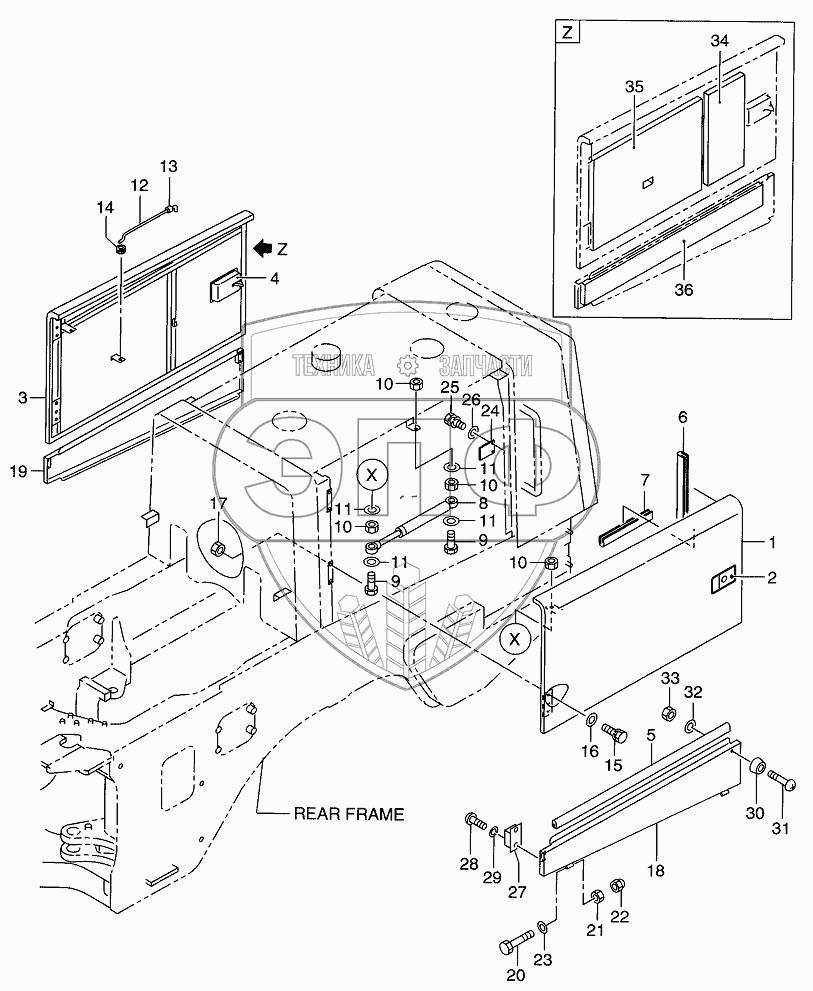 Каталог запасных частей к технике: Hitachi LX-130-7. SIDE PANEL