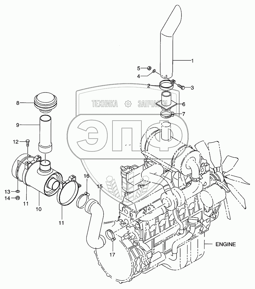 Каталог запасных частей к технике: Hitachi LX-160-7. AIR INTAKE & EXHAUST SYSTEM