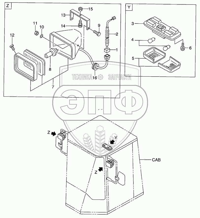 Каталог запасных частей к технике: Hitachi LX-160-7. CAB (LAMP)