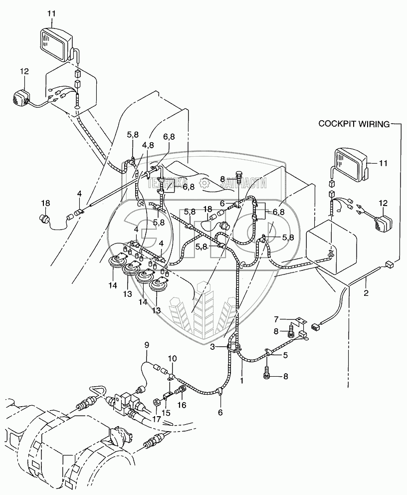 Каталог запасных частей к технике: Hitachi LX-160-7. FRONT FRAME WIRING