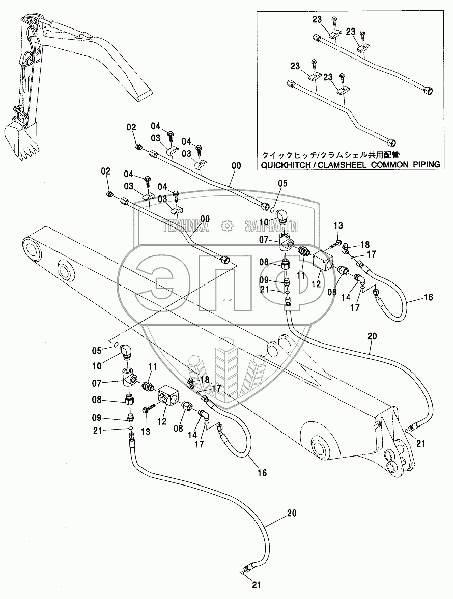 Каталог запасных частей к технике: Hitachi ZX-110. CLAMSHELL PIPING (2.81M ARM)
