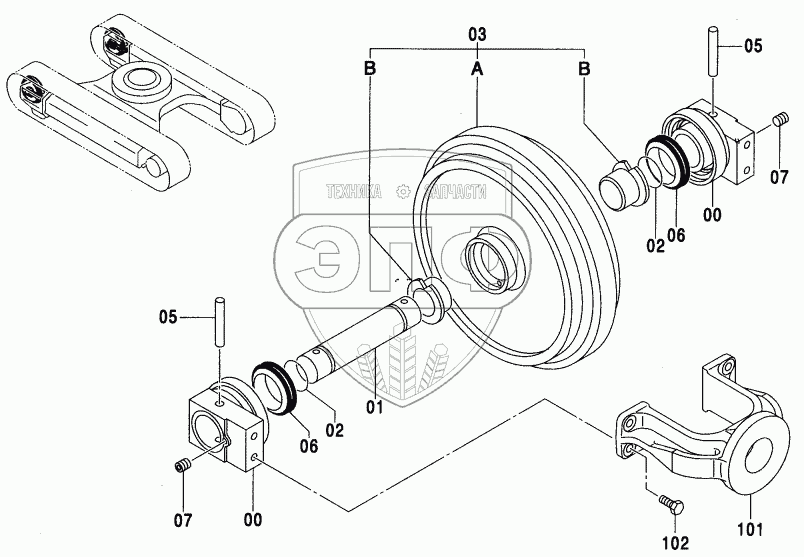 Каталог запасных частей к технике: Hitachi ZX-110. FRONT IDLER (M)