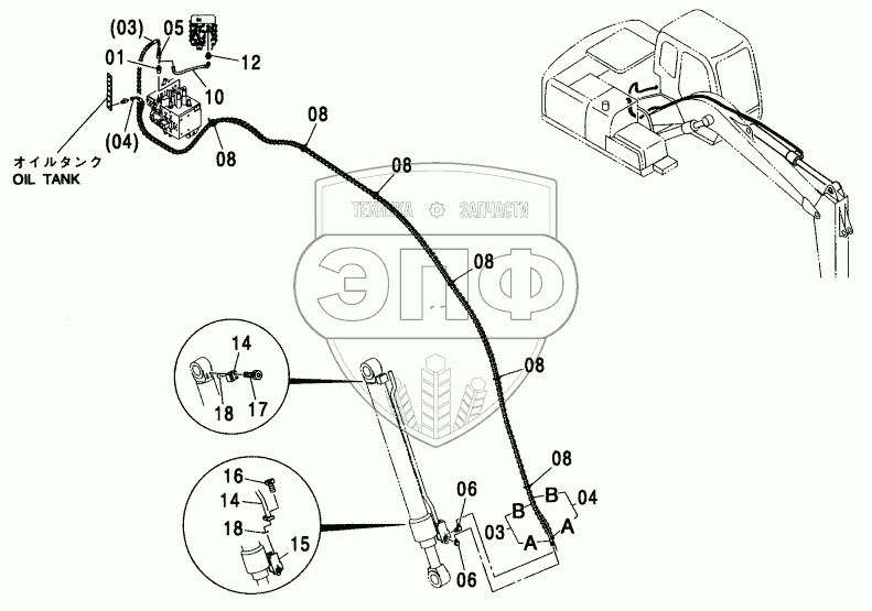 Каталог запасных частей к технике: Hitachi ZX-110. HOSE RUPTURE VALVE PIPING (ARM)