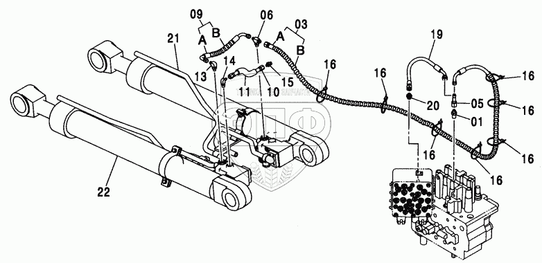 Каталог запасных частей к технике: Hitachi ZX-110. HOSE RUPTURE VALVE PIPING (B00M)