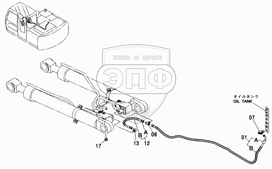 Каталог запасных частей к технике: Hitachi ZX-110. HOSE RUPTURE VALVE PIPING (BOOM)