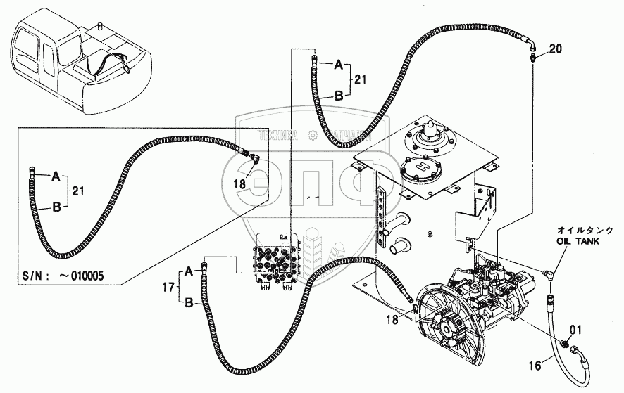 Каталог запасных частей к технике: Hitachi ZX-110. PILOT PIPING (B)