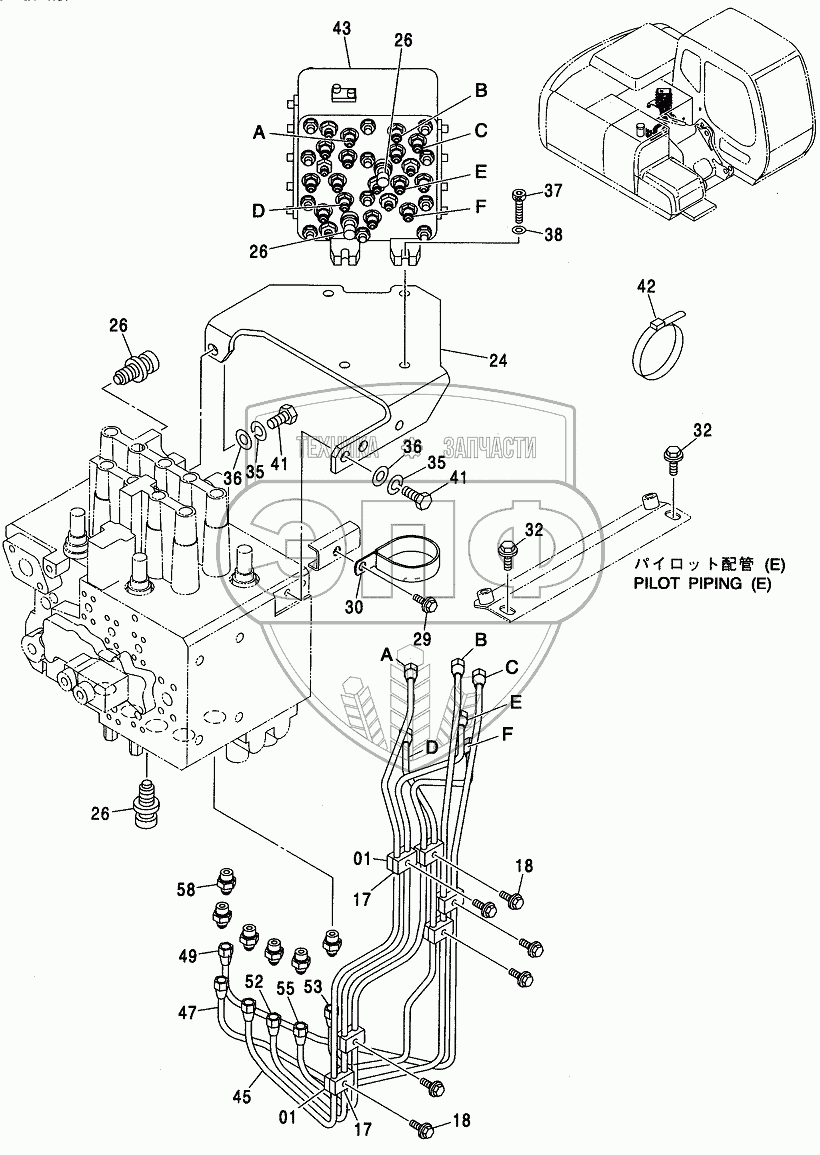 Каталог запасных частей к технике: Hitachi ZX-110. PILOT PIPING (D-1)