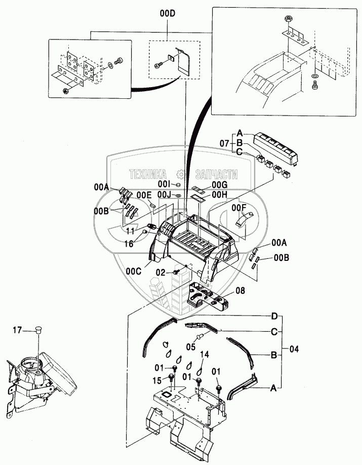 Каталог запасных частей к технике: Hitachi ZX-110. REAR BOX (HEATER)