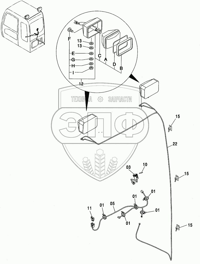Каталог запасных частей к технике: Hitachi ZX-110. REAR HEAD LAMP (2 LAMP)