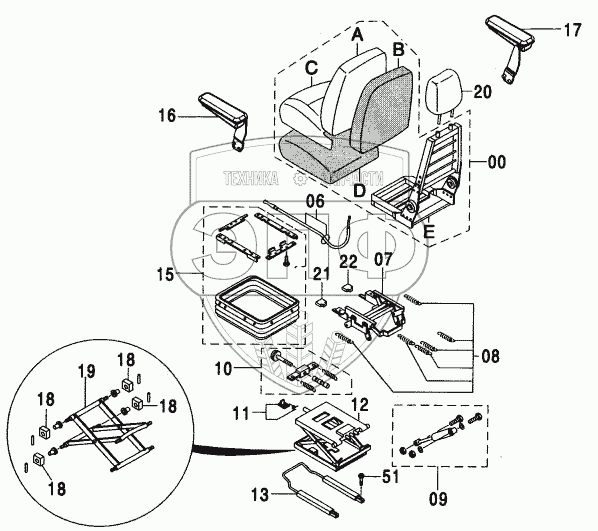 Каталог запасных частей к технике: Hitachi ZX-110. SUSPENSION SEAT (VINYL)