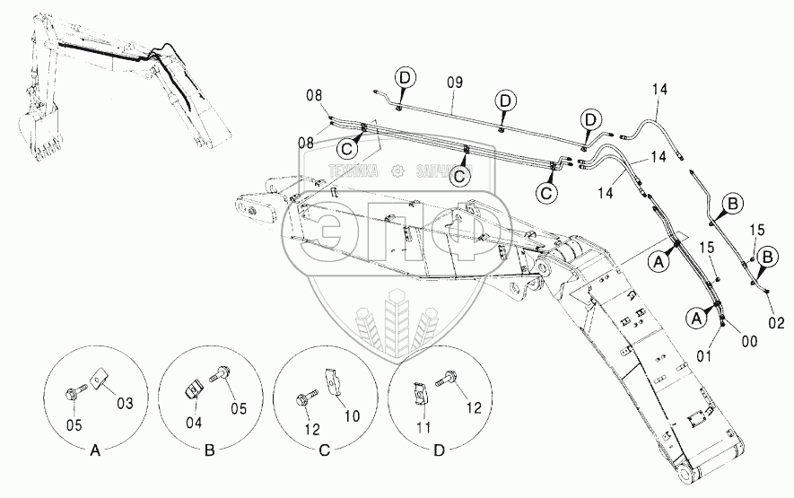 Каталог запасных частей к технике: Hitachi ZX-160W. ASSIST PIPING (2P-B00M) <EU>