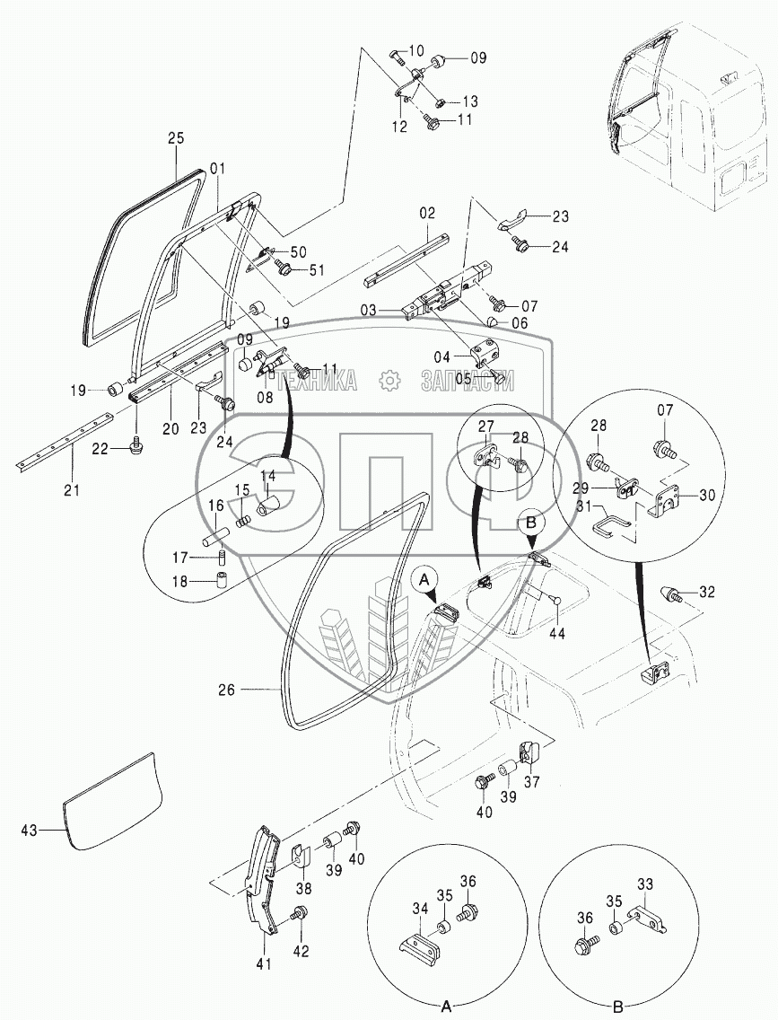 Каталог запасных частей к технике: Hitachi ZX-160W. CAB (4)