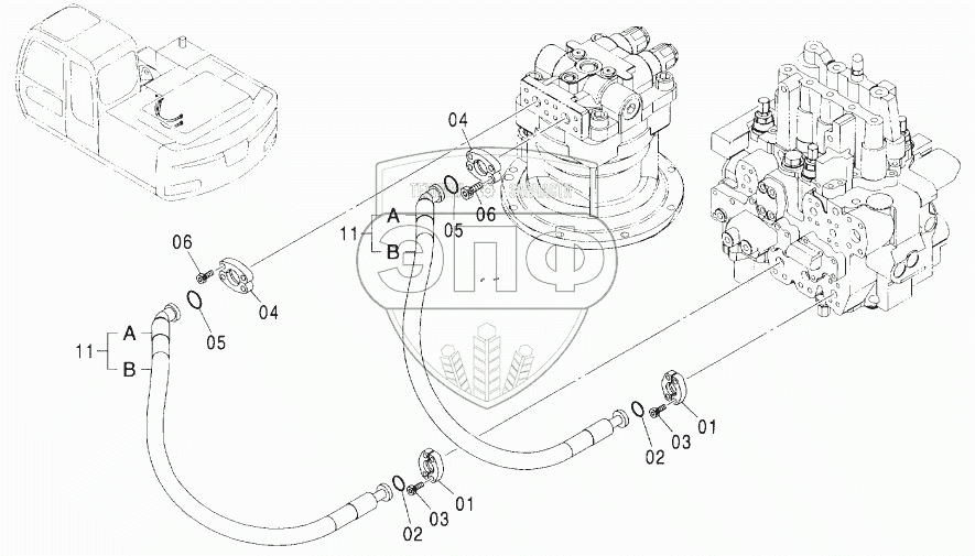 Каталог запасных частей к технике: Hitachi ZX-160W. MAIN PIPING (3)