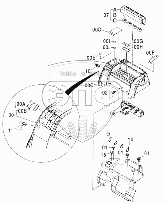 Каталог запасных частей к технике: Hitachi ZX-160W. REAR BOX (12V POWER SUPPLY)