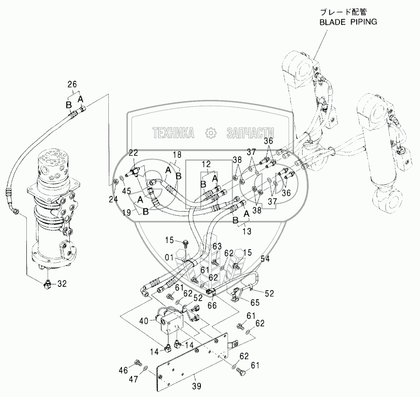 Каталог запасных частей к технике: Hitachi ZX-160W. REAR PIPING