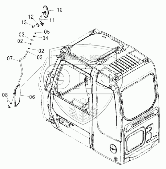 Каталог запасных частей к технике: Hitachi ZX-160W. REARVIEW MIRROR (LEFT) <EU>