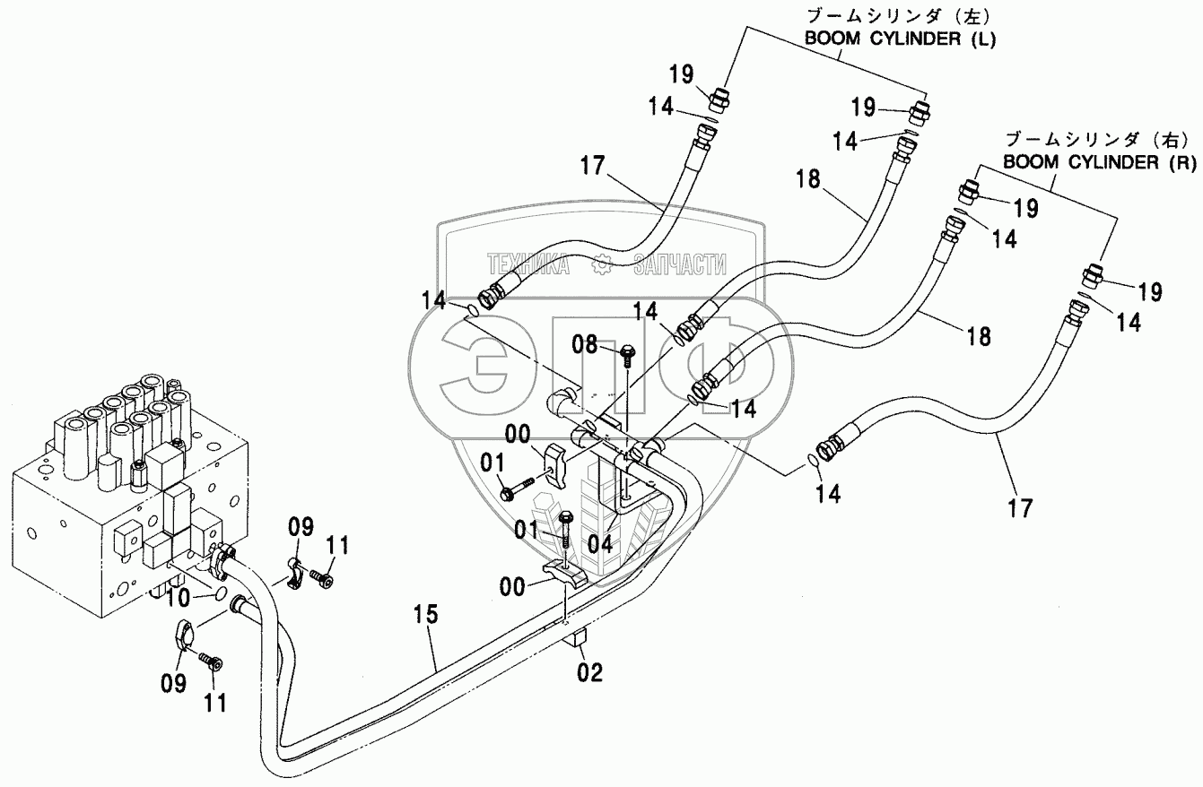 Каталог запасных частей к технике: Hitachi ZX-200. MAIN PIPING (1)