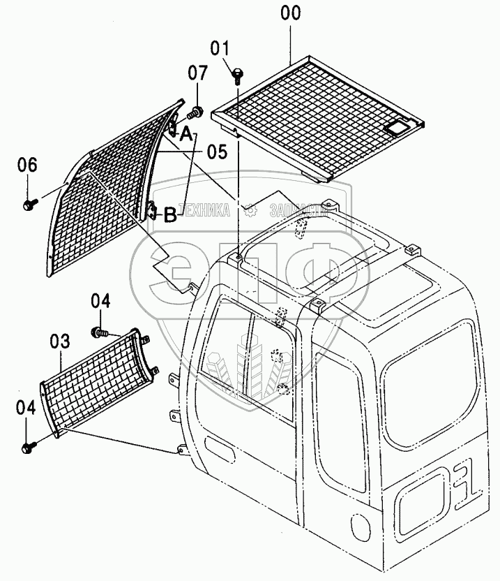 Каталог запасных частей к технике: Hitachi ZX-230. CAB GUARD <230, H, K>