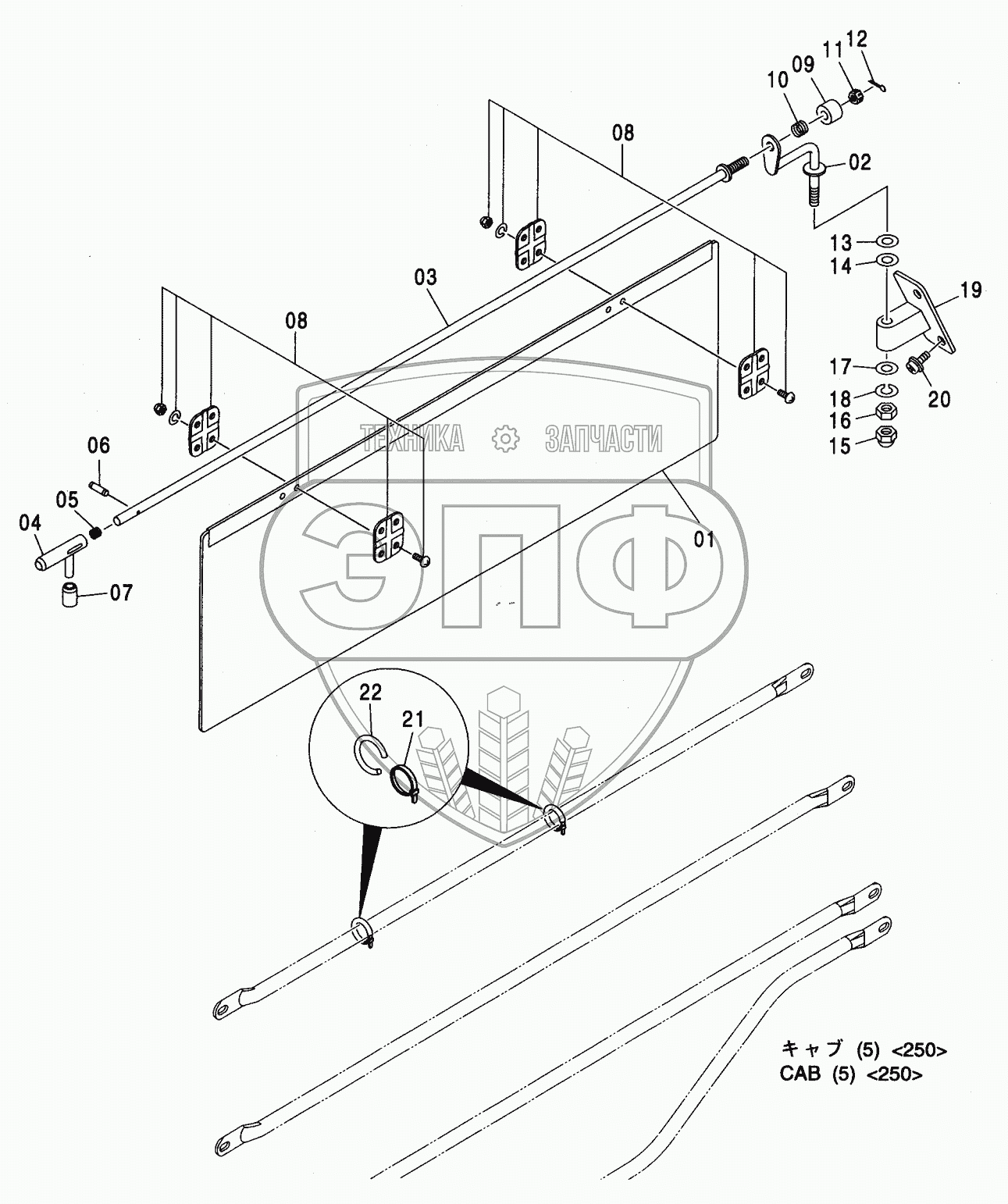 Каталог запасных частей к технике: Hitachi ZX-230. SUNVISOR <250>