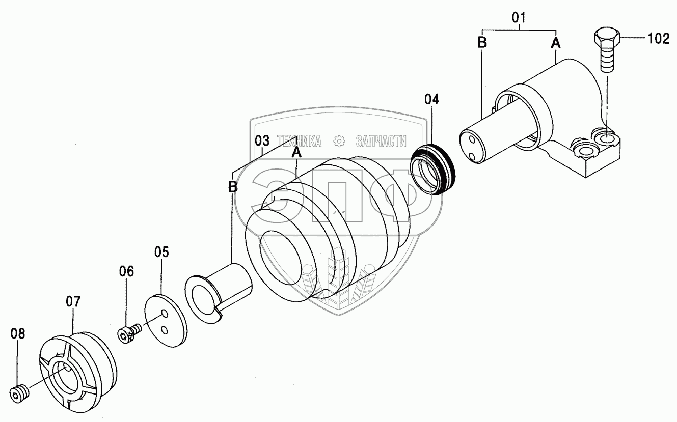 Каталог запасных частей к технике: Hitachi ZX-230. UPPER ROLLER (EU2)
