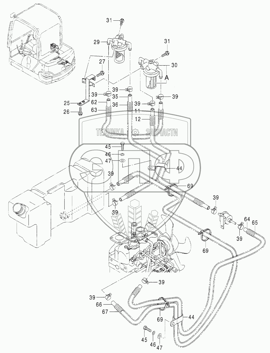 Каталог запасных частей к технике: Hitachi ZX-25. FUEL PIPING