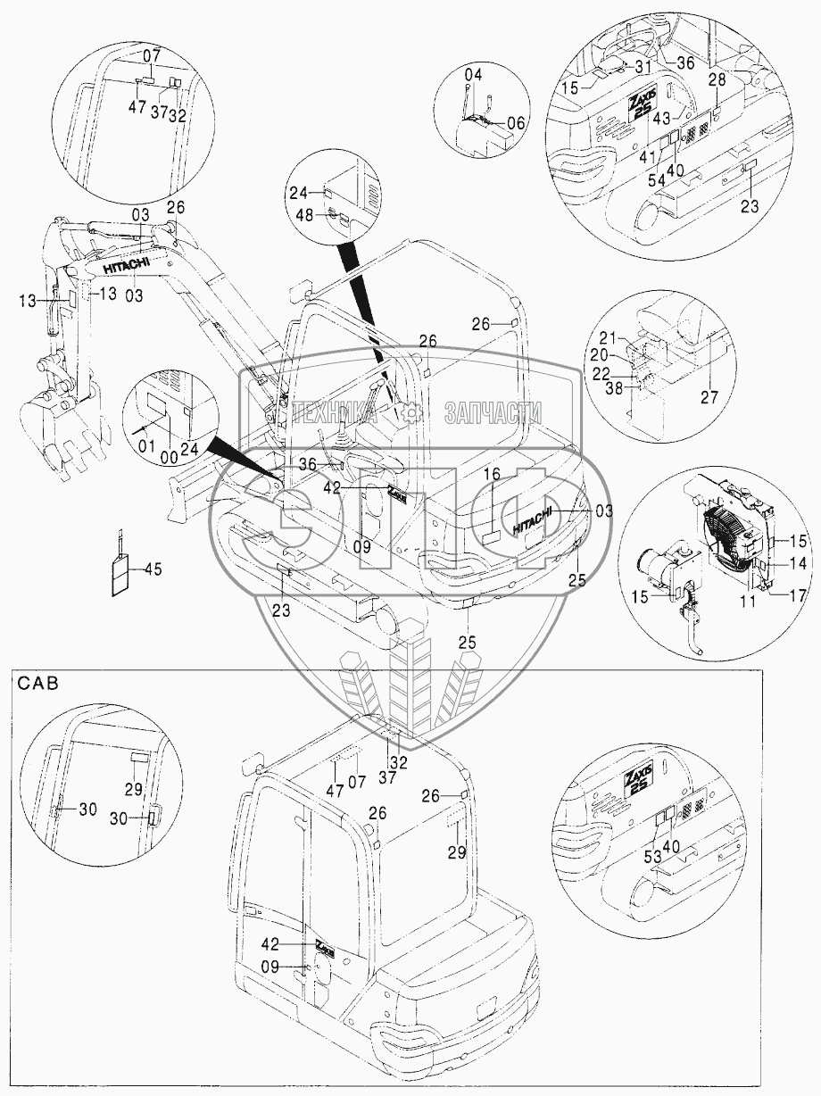 Каталог запасных частей к технике: Hitachi ZX-25. NAME-PLATE (ENGLISH)