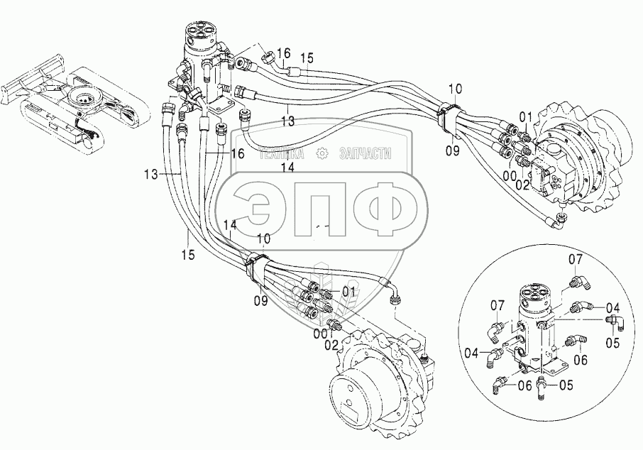 Каталог запасных частей к технике: Hitachi ZX-25. TRAVEL PIPING