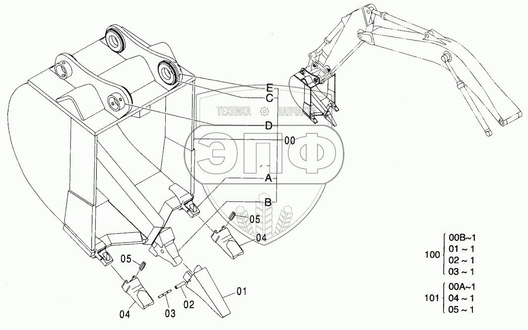 Каталог запасных частей к технике: Hitachi ZX-270. RIPPER BUCKET 0.8 JIS 94