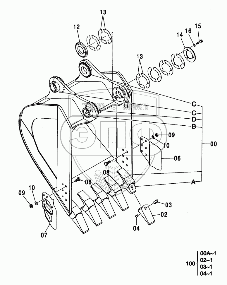 Каталог запасных частей к технике: Hitachi ZX-330. BUCKET 1.15 (JIS 94)