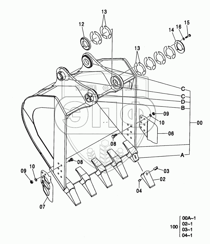 Каталог запасных частей к технике: Hitachi ZX-330. BUCKET 1.62 (JIS 94)