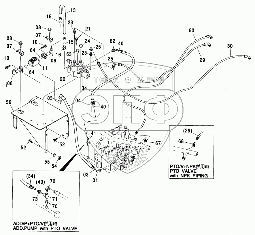 Каталог запасных частей к технике: Hitachi ZX-330. MAINE PIPING (PTO) (MONO BOOM)