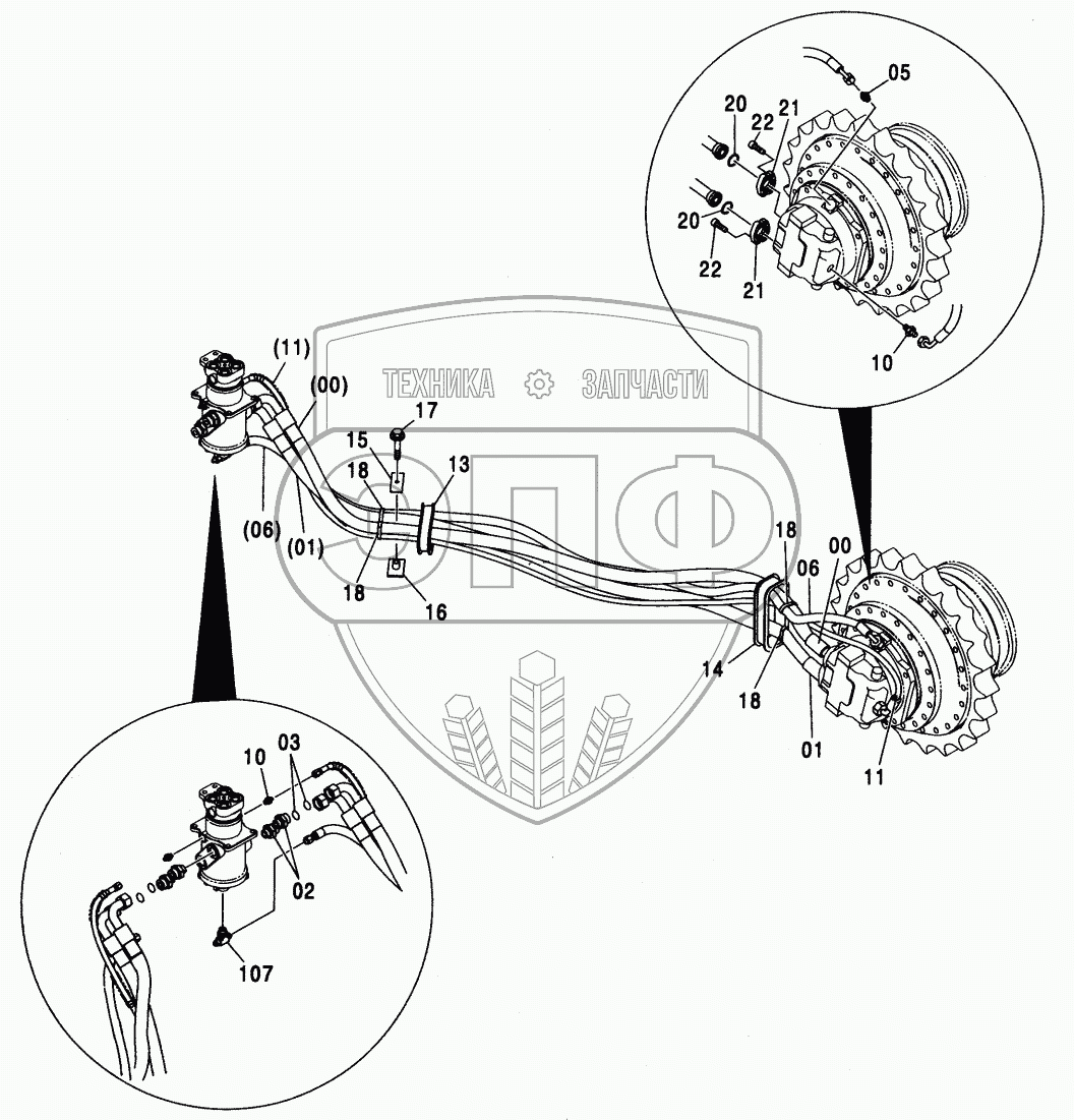 Каталог запасных частей к технике: Hitachi ZX-330. TRAVEL PIPING (MTH TRACK)