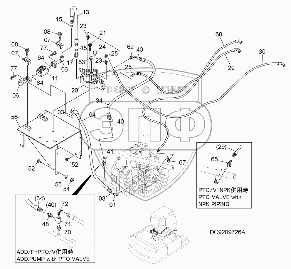 Каталог запасных частей к технике: Hitachi ZX-330-3G. MAIN PIPING (PTO)(BOOM)