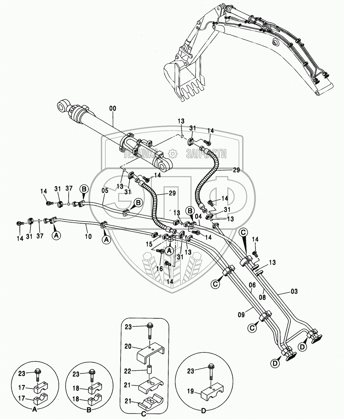 Каталог запасных частей к технике: Hitachi ZX-450. FRONT PIPING (BE BOOM)