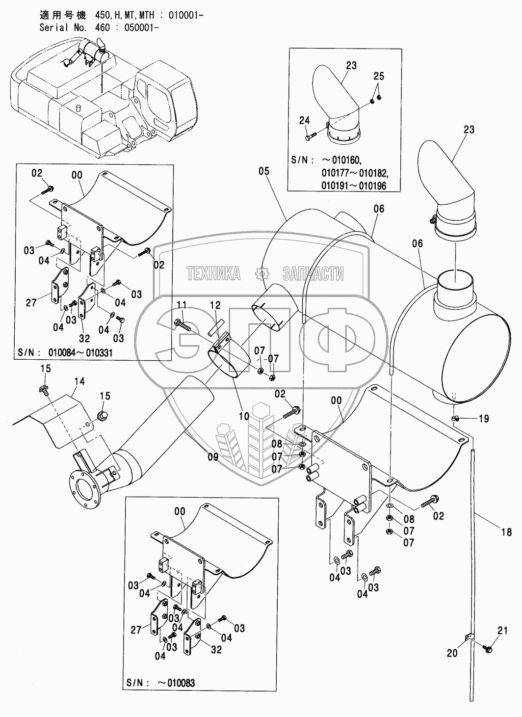 Каталог запасных частей к технике: Hitachi ZX-450. MUFFLER