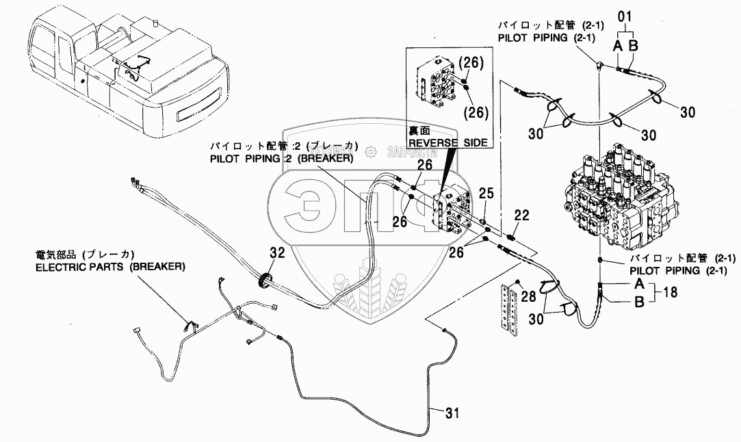 Каталог запасных частей к технике: Hitachi ZX-450. PILOT PIPING: 1 (BREAKER)
