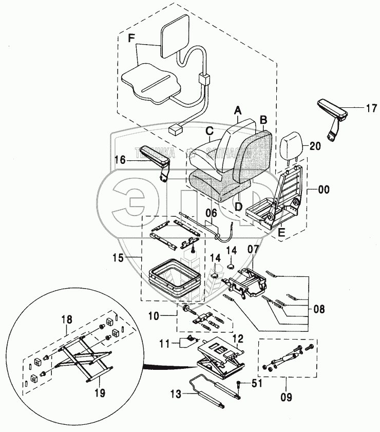 Каталог запасных частей к технике: Hitachi ZX-450. SUSPENSION SEAT (WITH HEATER) <460>