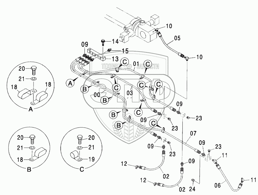 Каталог запасных частей к технике: Hitachi ZX-600. LUBRICATE PIPING (SEMI-LONG ARM)